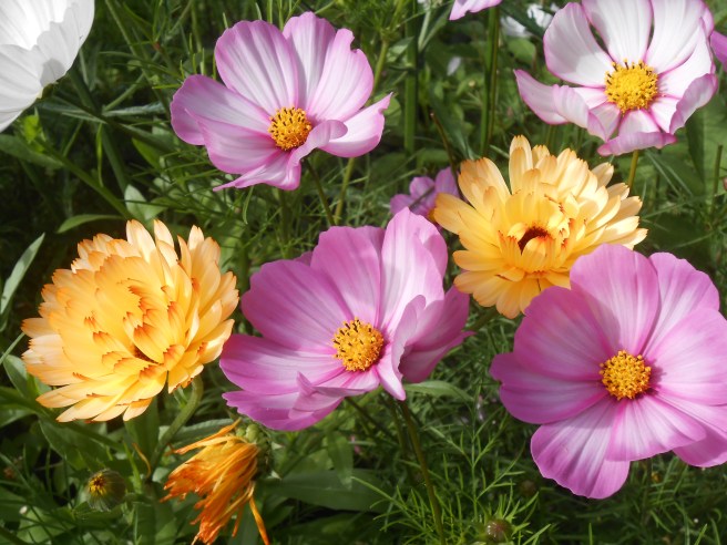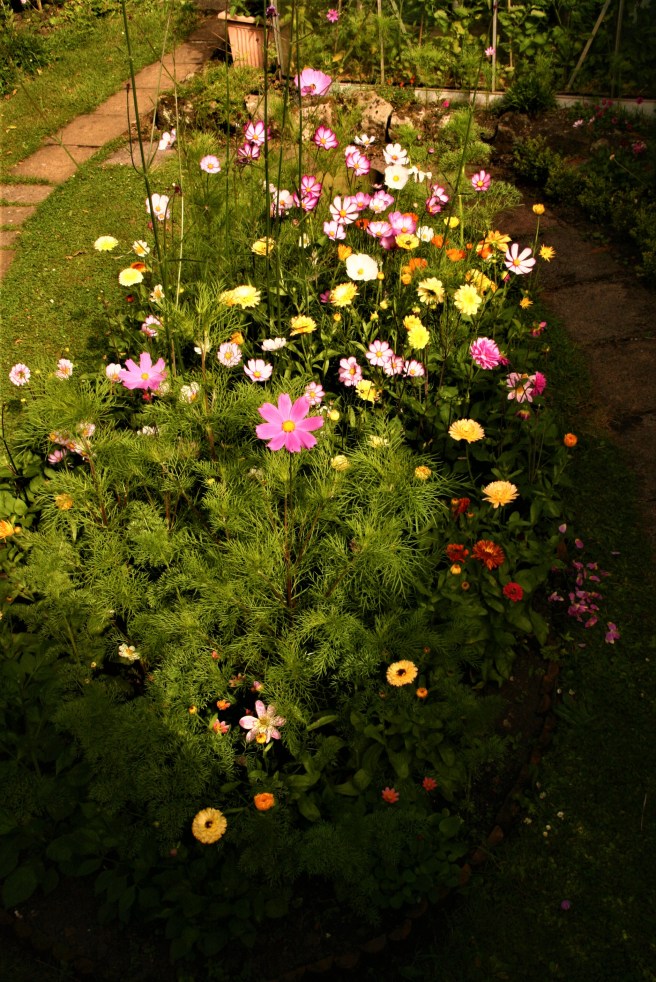 The unspoken garden has an oval heart now beating with echinacea dahlia more calendula zinnia and verbena and another galaxy of cosmos.