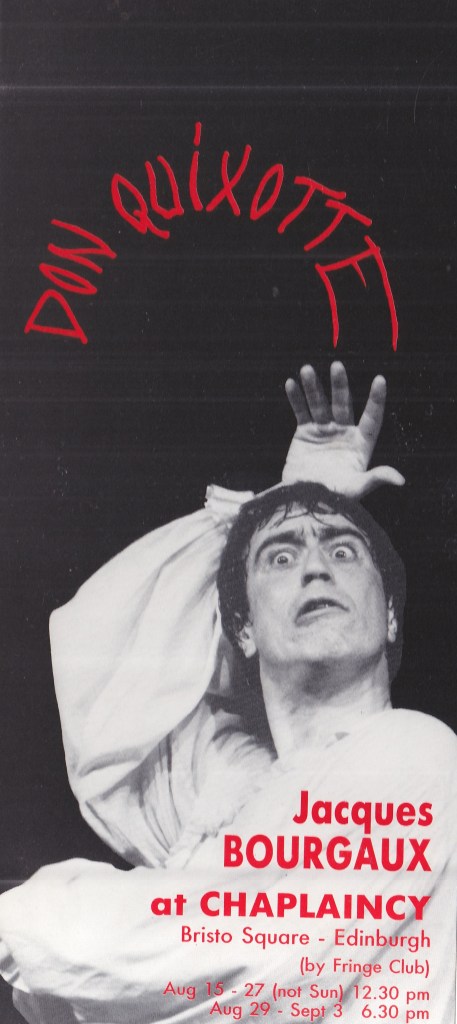 Solo shows make exceptional demands on spectator as well as presenter, but they can reconstitute the molecules of air in the theatre. I still cherish the memories of a student performance depicting Grace Darling from 1996 and another by a French actor who recreated Don Quixote at the Edinburgh Fringe in 1987. Each of those shows had a style of staging that drew attention to the environment that wasn’t there. They continuously created scenery that by a combination of voice and solo choreography ignited the imagination enabling the spectator to actively collaborate with the performer in a deeply satisfying manner.