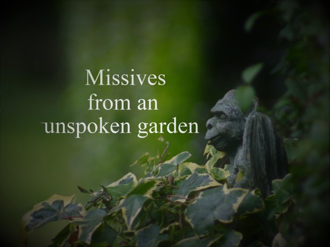 Why ‘unspoken’? The garden speaks continuously, day and night. It has spoken since long before it was enclosed ninety years ago, and it will never stop unless it becomes concreted ground. Even then it will speak again; just give it time. It has always been heard, we hear it every day and read it continuously, but its messages are not conveyed. They remain within us. Furthermore, each message is uniquely understood. No two people make the same translation. This was an opportunity to share one strand. Much more went unseen, unscented, untasted, untouched, unheard; and much more still went unvoiced, unspoken.