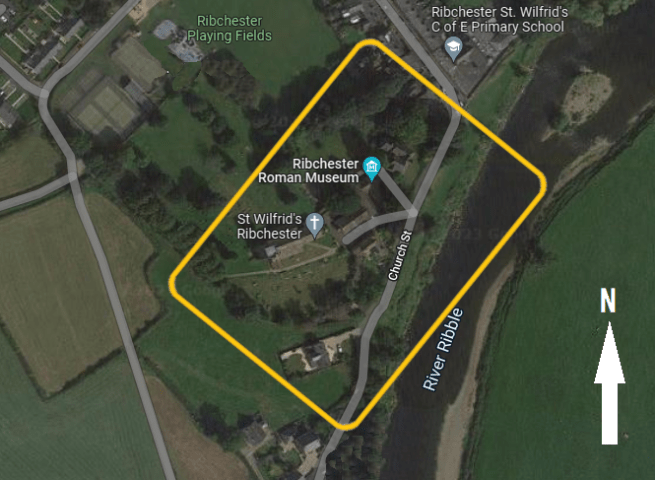 If you stand on the main car park in Ribchester (PR3 3ZH) and face the playing field you are viewing the site of the fort. If you turn right out of the car park and march westwards and follow the road where it bends left, then take the path through the gate when the road bends right, you will arrive at the footprint of the fort just before you reach the gate into the churchyard. If you walk through the graveyard, you will be diagonally crossing the interior of the fort. That path will lead you directly to the museum and if you continue past that you will arrive at the bend in Church Street which marks the site of the north-eastern wall. Jim Ridge lived at number 2. Just across the road a long row of public benches lines the river side of the school wall. The view from here has changed in detail since Roman times (the river has moved) but the topography of the skyline remains the same, with the mighty Pendle Hill dominating the distance. By following the path past the benches, you will skirt the Duddle Brook tributary to reach the rear entrance to the Roman Bath excavations. A longer, but more sedate, route to them is to be had by continuing northwards along Church Street, branching right down Water Street, pass the White Bull pub then turn right into Greenside and first right again.