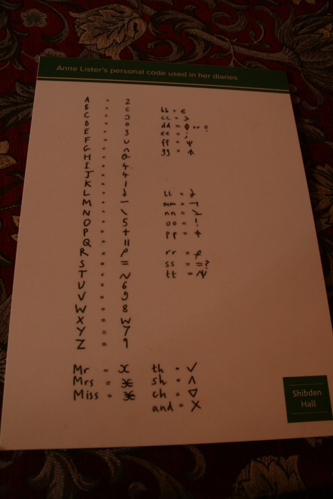 [1] Whitbread H, The Secret Diaries of Miss Anne Lister (vol 1) Virago. ISBN: 987-1-84408-719-8
