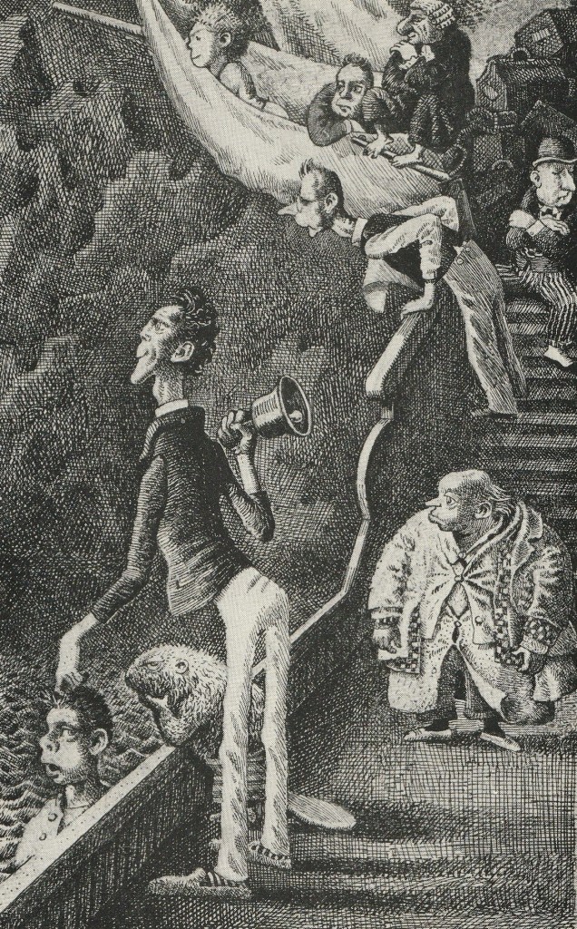 It was no surprise to learn that Peake was as much an artist and illustrator as he was an author. The books comprise a rich and intensely redolent prose, of a range and weave rarely found in contemporary literature. It was fortunate for us that he got into print before the modern dictum for fewer adjectives made effusive fiction an endangered species. The Gormenghast environment is not so much described as verbally painted. The characters are too well fleshed to be types, but in each case, their physicality and psychology are at once both instantly recognisable and yet entirely individual. As with the people in Peake’s drawings, we are presented with persons we have known but never met.