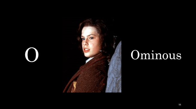 Oh dear, we think. That doesn’t bode well. Once the ominous is in place things thicken and the third pillar begins to emerge: