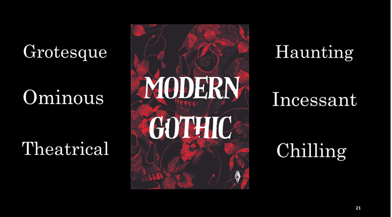 This lecture was constructed around seven short extracts from Modern Gothic. Those extracts are referred to and outlined, but not quoted in full here. The book is now widely available.