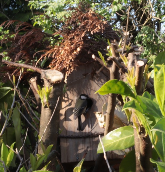 The greatest joy though was to find that for the second year running, the unspoken garden’s great tit box was adopted as a nesting site. This is despite it being rather exposed as a consequence of a severe hedge trim last winter