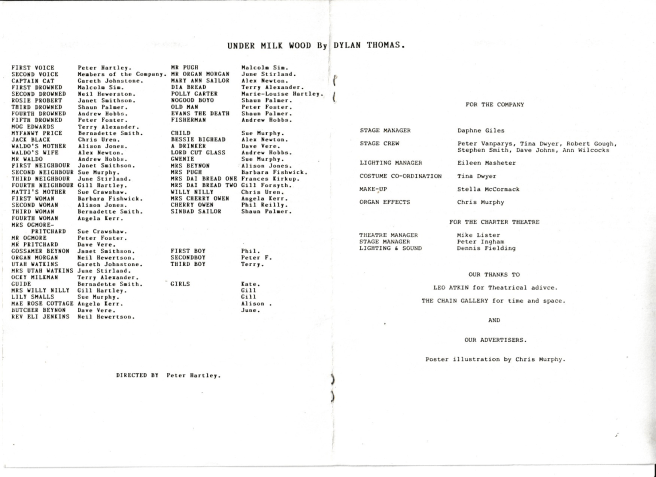 That day in the library in 1970 foretold my future, though I couldn’t see it at the time. Strapped into the sciences in the sixth form, the memory of the trophy and patronage of the benefactor led me to select drama as my mid-week recreation. That in turn took me to Under Milk Wood.